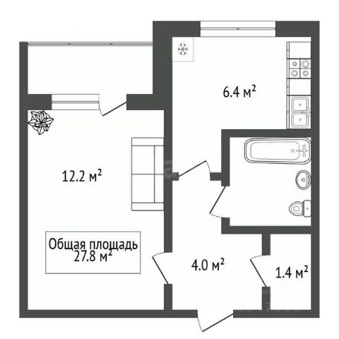 Для удобства проживания в жилой комнате 23,1 кв.м установлена перегородка, которая делит её на 2 изолированные комнаты. У вашего ребёнка будет своя комната!