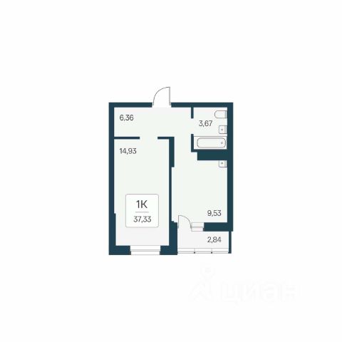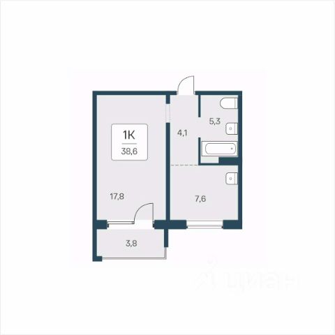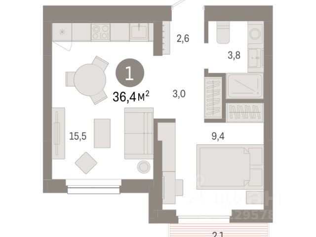 Квартира с кухней-гостиной и одной спальней в жилом районе "Пшеница". Особенности планировки: балкон, предчистовая отделка.