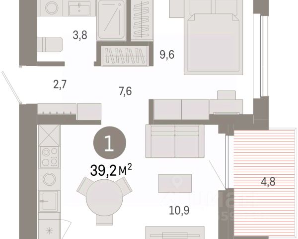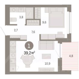 Просторная 1-комн. квартира с предчистовой отделкой в ЖК "Пшеница" на 7 этаже. Общая площадь: 39.24 кв.м., жилая: 9.6 кв.м., площадь просторной кухни-гостиной: 10.9 кв.м. Все окна выходят на одну сторону. В квартире одна лоджия, один совмещенный санузел. Наличие в квартире террасы дает возможность для обустройства дополнительной площади. Высота потолков 2.82 м.