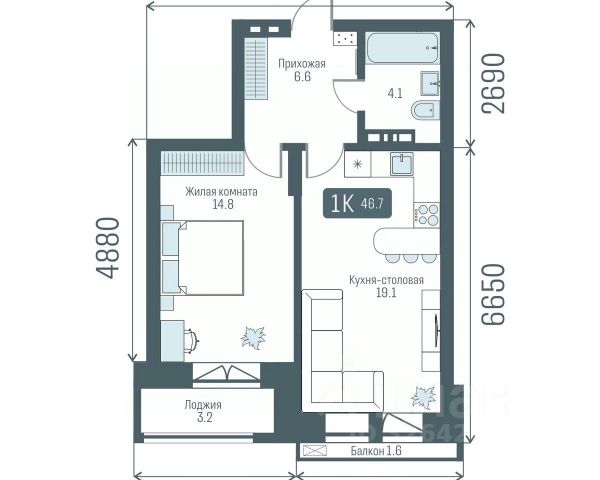 Однокомнатная квартира с предчистовой отделкой в ЖК "Лебедевский" на 7 этаже. Общая площадь: 41.3 кв.м., жилая: 9.6 кв.м., площадь просторной кухни-гостиной: 20.4 кв.м. Все окна выходят на одну сторону. В квартире один балкон, один совмещенный санузел. Высота потолков 2.82 м. Дом монолитный, многоподъездный, переменной этажности, от 9 до 12 этажей. Квартира находится в 6-й секции высотой 9 этажей в корпусе 1. На этаже 10 квартир. В подъезде 1 пассажирский и 1 грузовой лифт. Окончание строительства - 2 квартал 2028 года. Оформление сделки по договору долевого участия. Квартира с кухней-гостиной и одной спальней в квартале "Лебедевский". Особенности планировки: балкон, предчистовая отделка. квартиры в нашей базе: ЛБД01.1-Ж6.7.7. "Лебедевский" находится в Заельцовском районе, между улицами Лебедевского и Георгия Колонды. Рядом расположены остановки наземного транспорта. До станций метро "Заельцовская" и "Площадь Калинина" — 10-15 минут на автомобиле. По улице Георгия Колонды можно доехать на Мочищенское шоссе, улицы Жуковского и Красного проспекта, а оттуда — в любую точку города. "Лебедевский" состоит из башен и закрытых домов-кварталов высотой от 8 до 17 этажей. Благодаря переменной высотности зданий, архитектура квартала получилась разнообразной, а дворы домов — светлыми. В основе проекта — органичное соседство жилья с природой. "Лебедевский" граничит с лесопарковой зоной. Также мы предусмотрели здесь игровые зоны, площадки для тренировок, прогулочные дорожки, отдельно стоящий паркинг со спортивным комплексом и подземные парковки. Камерные дворы предназначены для отдыха жителей и закрыты для других горожан. Они приподняты над уровнем земли, а доступ автомобилей на их территорию ограничен. Во дворах появится до 40 видов растений. Мы подберём их так, чтобы в каждое время года двор имел свой цвет. Деревья высадим сразу взрослыми, со сформированной кроной. Зелень будет даже зимой — благодаря хвойным растениям. Детские площадки мы сделаем максимально абстрактными — чтобы вдохновлять детей на творчество, а не диктовать им сценарии игры. Разместим игровое оборудование только из натуральных материалов. Архитектурная выразительность фасадов достигается за счёт практичных и в то же время эстетичных решений. Большие окна помогают наполнить комнаты естественным светом. Летние помещения в каждой квартире служат дополнительным пространством для уединения. Также здесь можно установить кондиционер. На верхних этажах спроектированы террасы, которые формируют архитектурный облик зданий. На первых этажах домов будут работать магазины и полезные сервисы. Если Вы - риелтор, пожалуйста, за более подробной информацией обратитесь на горячую линию на нашем официальном сайте. #25AOcd
