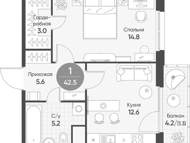 В чистой продаже 1-комнатная квартира под самоотделку в новом доме наукограда Кольцово.
