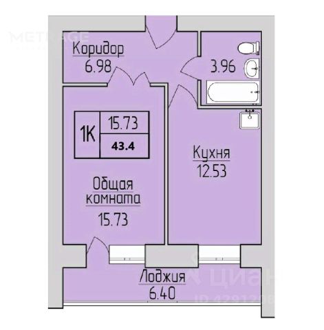 • ✅ Объект наибольшей площади: 43,4 м²