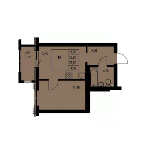 Площадь квартиры 40,5 квадратов + балкон!