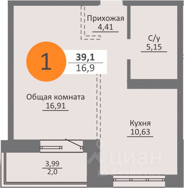 Квартира расположена в секции "А", окна выходят на Арбитражный суд. Это полноценная 2-комнатная студия!