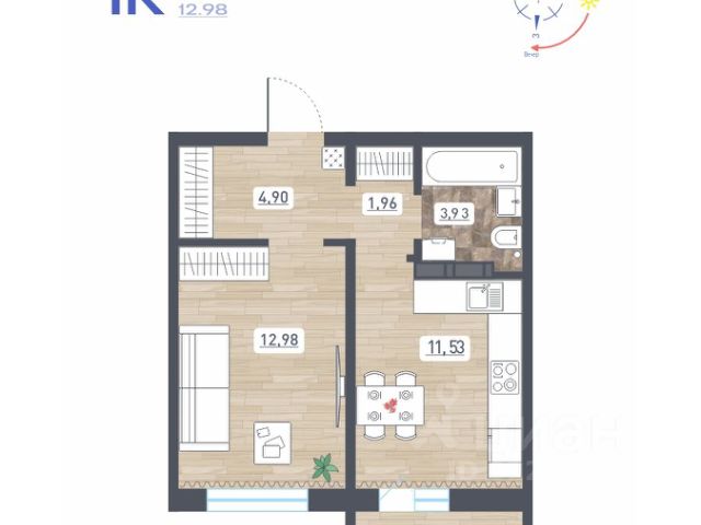 Продаётся 1-комнатная квартира в строящемся доме (Дом 11), срок сдачи: IV-кв. 2025, общей площадью 45.61 кв.м., на 1 этаже. Расположение, транспортная доступность Жилой комплекс "Радуга Сибири", занимающий территорию 10,4 га, расположен на берегу озера, в Ленинском районе Новосибирска. Это экологически благоприятный регион на левом берегу Оби. В двадцати минутах пешком находится железнодорожная платформа пригородного направления "Ипподром". Электричка доезжает до центра Новосибирска за 25 минут. От комплекса организовано движение маршрутного такси 12, на котором можно доехать до центра Левобережья (метро "Площадь Маркса") и главного железнодорожного вокзала Новосибирска. Путь на автомобиле до площади Маркса или международного аэропорта займет пятнадцать минут, до центра Новосибирска - двадцать минут. Район развивается: по соседству с "Радугой Сибири" построен жилой микрорайон "Чистая Слобода", планируется расширение Порт-Артурской улицы, продление улицы Титова. В 2016 году было запущено движение скоростного трамвая. Инфраструктура В цокольных этажах домов находятся коммерческие помещения. Вблизи комплекса "Радуга Сибири" расположены два детских сада, строится школа, планируется открытие поликлиники. За двадцать минут можно дойти до общеобразовательной школы 86 - в ней был построен спортивный зал и сделан ремонт в 2015 году. В пешей доступности находятся: Дворец культуры "Сибтекстильмаш" с кружками и секциями, Троице-Владимирский собор и Новосибирский ипподром. Вблизи ЖК много зеленых насаждений, пешком можно дойти до парка и сквера. На расстоянии 3 км от комплекса расположены МНТК "Хирургия глаза" им. С.Н Федорова, плавательный бассейн и спорткомплекс "Заря" со стадионом, зимним катком, футбольными и хоккейными площадками. Надежность застройщика Проект комплексной застройки "Радуга Сибири" реализует ООО "Развитие", которое создано в 2012 году и входит в состав промышленно-строительного концерна "Сибирь". Концерн работает с 1990 года, среди завершенных объектов - жилые комплексы "На Рябиновой", "Нарымская Жемчужина", "Тулинское", "Березовое". В 2012 году компания заняла первое место среди застройщиков Новосибирска по объемам ввода жилья. Градостроительный план ЖК "Радуга Сибири" был разработан в 2015 году, в июле этого же года выдано разрешение на строительство. Архитектура Жилой комплекс "Радуга Сибири" - это восемь монолитных 17-этажных домов. Здания возводятся по традиционной монолитной технологии: перекрестно-стеновая система с несущими монолитными продольными и поперечными внутренними стенами, объединенными железобетонными перекрытиями. При строительстве применяется тоннельная опалубка Teknik-L. Квартиры сдаются с предчистовой отделкой, качественными деревянными стеклопакетами, улучшенной шумоизоляцией. Стены выровнены и оштукатурены, полы выровнены. В квартирах выполняется разводка электричества и вертикальная разводка системы отопления, подводятся трубы холодной и горячей воды, канализации, устанавливаются счетчики на электроэнерг