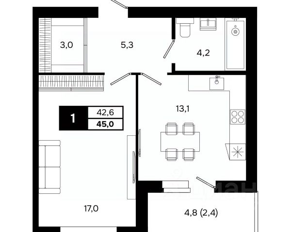 1 взрослый собственник, обременений нет, полная цена в договоре.
