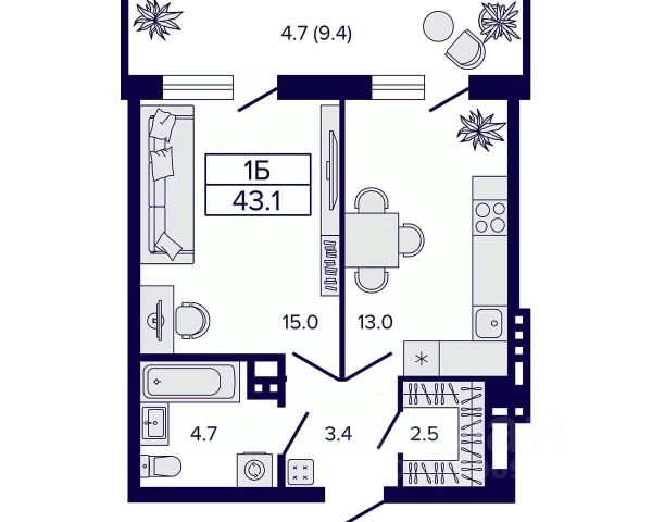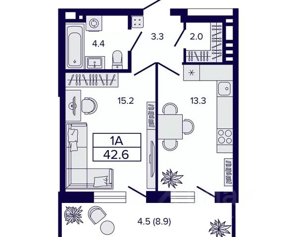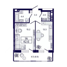 • ✅ Минимальная площадь: 42,6 м²