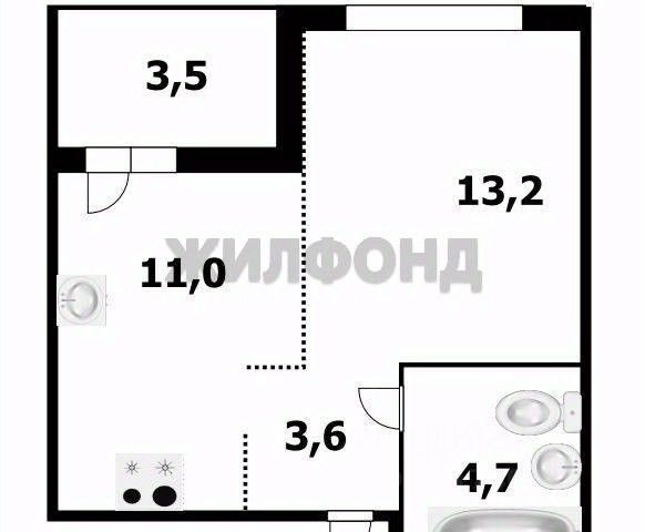 Квартира на 11-м этаже 13-этажного дома, построенного в 2025 году. Общая площадь — 34,2 кв. м, из которых 13,2 кв. м — жилая площадь, 11 кв. м — кухня. Высота потолков — 2,7 м.