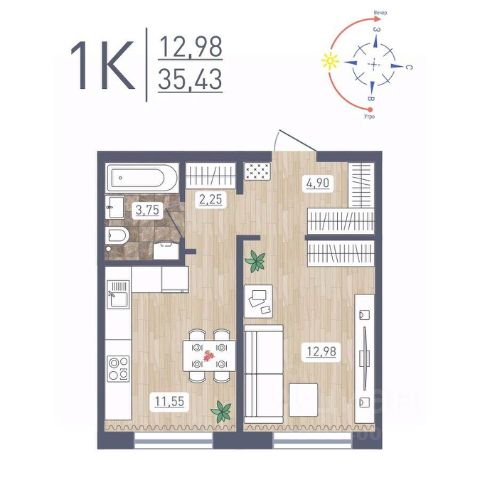 Продаётся 1-комнатная квартира в сданном доме (Забалуева, 96 (Дом 4)), срок сдачи: III-кв. 2022, общей площадью 49 кв.м., на 3 этаже. Расположение, транспортная доступность Жилой комплекс "Радуга Сибири", занимающий территорию 10,4 га, расположен на берегу озера, в Ленинском районе Новосибирска. Это экологически благоприятный регион на левом берегу Оби. В двадцати минутах пешком находится железнодорожная платформа пригородного направления "Ипподром". Электричка доезжает до центра Новосибирска за 25 минут. От комплекса организовано движение маршрутного такси 12, на котором можно доехать до центра Левобережья (метро "Площадь Маркса") и главного железнодорожного вокзала Новосибирска. Путь на автомобиле до площади Маркса или международного аэропорта займет пятнадцать минут, до центра Новосибирска - двадцать минут. Район развивается: по соседству с "Радугой Сибири" построен жилой микрорайон "Чистая Слобода", планируется расширение Порт-Артурской улицы, продление улицы Титова. В 2016 году было запущено движение скоростного трамвая. Инфраструктура В цокольных этажах домов находятся коммерческие помещения. Вблизи комплекса "Радуга Сибири" расположены два детских сада, строится школа, планируется открытие поликлиники. За двадцать минут можно дойти до общеобразовательной школы 86 - в ней был построен спортивный зал и сделан ремонт в 2015 году. В пешей доступности находятся: Дворец культуры "Сибтекстильмаш" с кружками и секциями, Троице-Владимирский собор и Новосибирский ипподром. Вблизи ЖК много зеленых насаждений, пешком можно дойти до парка и сквера. На расстоянии 3 км от комплекса расположены МНТК "Хирургия глаза" им. С.Н Федорова, плавательный бассейн и спорткомплекс "Заря" со стадионом, зимним катком, футбольными и хоккейными площадками. Надежность застройщика Проект комплексной застройки "Радуга Сибири" реализует ООО "Развитие", которое создано в 2012 году и входит в состав промышленно-строительного концерна "Сибирь". Концерн работает с 1990 года, среди завершенных объектов - жилые комплексы "На Рябиновой", "Нарымская Жемчужина", "Тулинское", "Березовое". В 2012 году компания заняла первое место среди застройщиков Новосибирска по объемам ввода жилья. Градостроительный план ЖК "Радуга Сибири" был разработан в 2015 году, в июле этого же года выдано разрешение на строительство. Архитектура Жилой комплекс "Радуга Сибири" - это восемь монолитных 17-этажных домов. Здания возводятся по традиционной монолитной технологии: перекрестно-стеновая система с несущими монолитными продольными и поперечными внутренними стенами, объединенными железобетонными перекрытиями. При строительстве применяется тоннельная опалубка Teknik-L. Квартиры сдаются с предчистовой отделкой, качественными деревянными стеклопакетами, улучшенной шумоизоляцией. Стены выровнены и оштукатурены, полы выровнены. В квартирах выполняется разводка электричества и вертикальная разводка системы отопления, подводятся трубы холодной и горячей воды, канализации, устанавливаются счетчики на эл Продается 1-комнатная квартира на улице Забалуева в городе Новосибирск.