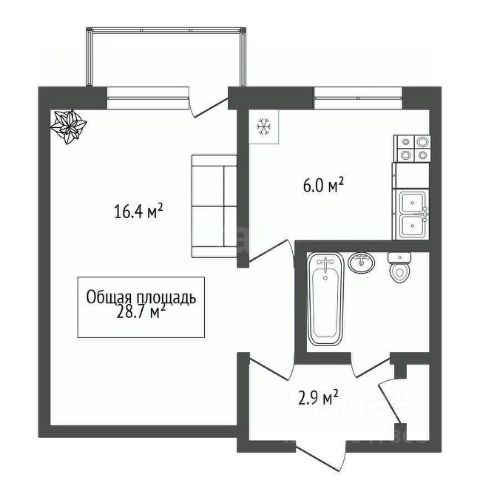 • ✅ Минимальная площадь: 18,8 м²
