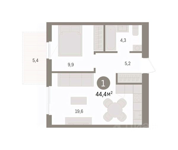 1-комн. квартира от застройщика с предчистовой отделкой в ЖК "Пшеница" на 6 этаже. Общая площадь: 44.36 кв.м., жилая: 9.9 кв.м., площадь просторной кухни-гостиной: 19.6 кв.м. Все окна выходят на одну сторону. В квартире один балкон, один совмещенный санузел. Высота потолков 2.82 м. Дом монолитный, многоподъездный, переменной этажности, от 7 до 8 этажей. Квартира находится в 3-й секции высотой 8 этажей в корпусе 5-2. На этаже 6 квартир. В подъезде 1 пассажирский и 1 грузовой лифт. Окончание строительства - 4 квартал 2027 года. Оформление сделки по договору долевого участия. Квартира с кухней-гостиной и одной спальней в жилом районе "Пшеница". Особенности планировки: балкон, предчистовая отделка. квартиры в нашей базе: ПШЦ05.2-Ж3.6.3. "Пшеница" расположена в третьем микрорайоне посёлка Краснообск, на пересечении улицы Центральная и Советского шоссе. Посёлок был создан в 1970 году. Архитекторы создали в Краснообске все условия для научной деятельности, быта, культурного развития, отдыха и поддержания здоровья жителей. Но их проект так и не был полностью реализован. Сегодня рядом с проектом "Пшеница" расположены остановки транспорта, выезды на транспортные магистрали. До Бугринского моста — 15 минут на автомобиле. До станции метро "Площадь Маркса" — 35 минут на автобусе, 20 минут на автомобиле. В 1520 минутах от жилого района расположен крупный ТРЦ "Мега". Внутри посёлка сформирована необходимая инфраструктура: лицей, школы, детские сады, больница, поликлиника, частные медицинские центры, магазины, спортивные клубы. Рядом находится лесопарк им. академика Синягина. Район "Пшеница" — это квартальная среднеэтажная застройка с закрытыми от машин безопасными дворами. В основу проекта мы заложили три принципа. Первый — разнообразие и плотность. Для нас важно создать среду, где человек в шаговой доступности мог бы получить любой сервис. Второй принцип — сохранение истории места, уважение к идеям первых архитекторов ВАСХНИЛа и локальной идентичности. Достопримечательностью района станет круговой бульвар. Третий принцип — связанность. Район постепенно станет единым целым за счет организации плотной сети вело- и пешеходных маршрутов, формирования разнородных общественных пространств. Если Вы - риелтор, пожалуйста, за более подробной информацией обратитесь на горячую линию на нашем официальном сайте. #2mdiwa Продается 1-комнатная квартира с балконом в Новосибирской области.