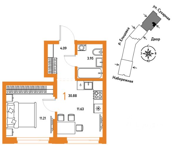Новая квартира в ЖК "Страна.Береговая" напрямую от федерального застройщика "Страна Девелопмент". Продается 1комнатная квартира на 23 этаже от застройщика Страна Девелопмент. Площадь квартиры 30,88 кв. м. Жилой комплекс "Страна.Береговая" — новый флагманский проект федерального застройщика "Страна Девелопмент" в Новосибирске. Дом на берегу Оби с захватывающими видами из окон. Три секции разной этажности с акцентной башней-доминантой образуют камерное пространство с закрытым двором и личным зелёным садом для отдыха. ПРЕИМУЩЕСТВА Свой приватный двор, окружённый зеленью, которая будет цвести весь год. Двор с релакс-пространством, спортивной зоной с воркаут и настольным теннисом. Детская площадка из природных материалов. Двор круглосуточно находится под видеонаблюдением. Парадные с зелёным оазисом из растений. Для комфорта мы предусмотрели тёплые тамбуры, в зонах ожидания разместили мягкие диваны. Также мы добавили возможность бесключевого доступа — по распознаванию лица или считыванию BLE-ключа. Спроектирована подземная парковка на 217 машиномест. Ваш личный транспорт всегда будет под защитой и видеонаблюдением — переживать о его сохранности не придётся. Въезд в паркинг осуществляется с помощью умной камеры по госномеру либо BLE-метке. А чтобы подняться к квартире, не нужно выходить на улицу — лифты отвезут на нужный этаж. Для гостей за территорией двора предусмотрена открытая гостевая парковка. ОТДЕЛКА Квартиры сдаются с предчистовой отделкой: произведена разводка электричества и отопления, выполнена стяжка пола, стены выровнены "под маяк", установлены розетки, выключатели и радиаторы. ДИЗАЙНЕРСКАЯ ОТДЕЛКА При покупке квартиры в ЖК "Страна.Береговая" можно включить стоимость ремонта в ипотеку. Пять вариантов на выбор: хлопковая нить, серый шторм, белый камень, шалфей, голубой вереск. Включено всё — обои, ламинат, натяжной потолок и даже кондиционер. Также для вас есть четыре варианта ремонта в ванной — акриловая ванна с экраном, смеситель с лейкой, подвесной унитаз, зеркало с подсветкой. Останется только разместить мебель! СПОСОБЫ ПОКУПКИ Сотрудники "Страна Девелопмент" будут сопровождать вас на каждом этапе сделки, помогут получить одобрение по ипотеке или снизить ежемесячный платеж. - ипотека - рассрочка - с использованием материнского капитала - 100% оплата наличными