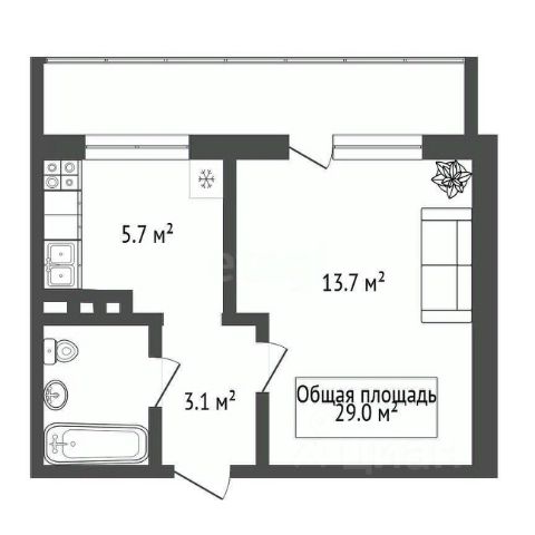 Общая площадь квартиры - 33,7 м² и это без лоджии. Лоджия застекленная - 3,2 м², на которой можно оборудовать дополнительные места для хранения.