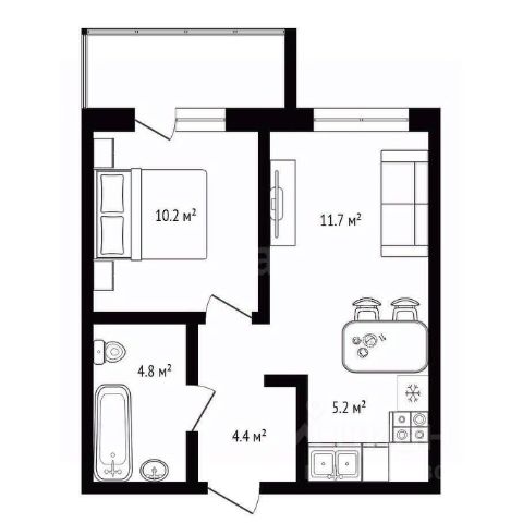 Площадь квартиры 40,5 квадратов + балкон!