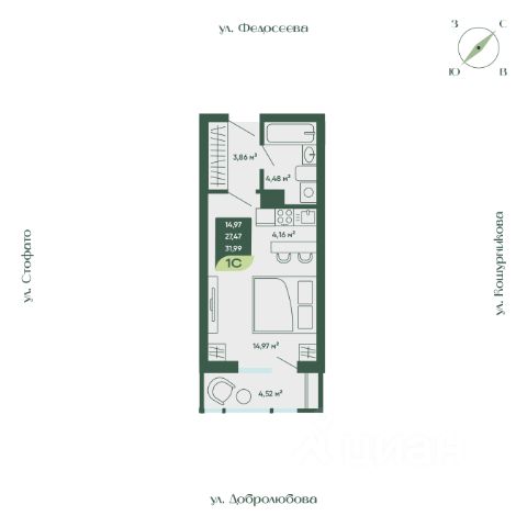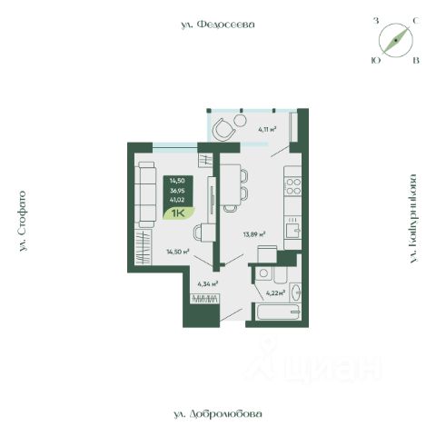 • ✓ В базе Циан 18 1-комнатных квартир в ЖК Мичурин в Новосибирске