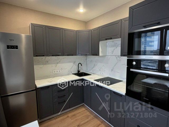 3. Кухонная зона - пол керамогранит, стены покраска по шпаклевке, кухня с встроенной варочной поверхностью на три комфорки (элекро, третья комфорка с расширением), встроенный духовой шкаф (функций много, в том числе вертел), отдельная подсветка над рабочей зоной от розетки, так же выведен отдельно кабель для подсветки.