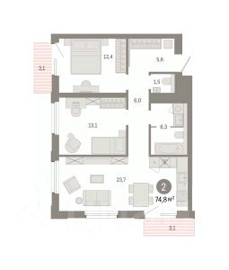 Двухкомнатная квартира с предчистовой отделкой в ЖК "Город-на-озере" на 7 этаже. Общая площадь: 74.77 кв.м. Высота потолков 3.0 м. Дом монолитный, многоподъездный, переменной этажности, от 9 до 24 этажей. Квартира находится в 1-й секции высотой 14 этажей в корпусе 1. На этаже 8 квартир. В подъезде 1 пассажирский и 1 грузовой лифт. Окончание строительства - 4 квартал 2028 года. Оформление сделки по договору долевого участия. Квартира с кухней-гостиной и двумя спальнями в проекте Город-на-озере. Особенности планировки: балкон, второй санузел, потолки 3 м и выше, предчистовая отделка, разнесённые спальни. квартиры в нашей базе: ГРД01-Ж1.7.4. Город-на-озере находится в Центральном районе Новосибирска, на пересечении Ипподромской магистрали и улицы Фрунзе. По этим крупным транспортным артериям легко добраться в любое место города и на автомобиле, и на общественном транспорте. До ближайших автобусных остановок — 5 минут пешком, а до станции метро "Березовая Роща" — 10 минут. В радиусе 1,5 км вокруг квартала уже сформирована необходимая инфраструктура. Здесь есть детские сады, школы, больницы, аптеки, спортивные клубы, торговые центры с супермаркетами, ресторанами и кинотеатрами. Для большего комфорта жителей Город-на-озере обеспечат собственной инфраструктурой. В квартале будет свой торговый центр с магазинами и полезными сервисами. Город взял на себя обязательство создать рядом образовательный кластер — два детских сада и две школы. Особенность квартала — озеро Верховое. Жители района смогут прогуляться по набережной, вокруг водоёма, где будет круговой пешеходный маршрут, с разными зонами отдыха. Кроме того, в пешей доступности от Города-на-озере находятся еще два городских парка: "Центральный" и "Березовая роща". Город-на-озере — проект комплексного развития территории (КРТ) по принципу многофункциональной застройки, или mixed-use. Это когда на одной территории сочетаются жилая, коммерческая, социальная и рекреационная инфраструктура. К 2032 году здесь появятся разноэтажные жилые дома с приватными дворами, образовательный кластер, деловой центр, торговая улица и общественные пространства, открытые для всех горожан. Люди смогут жить и работать в Городе-на-озере, а в обеденный перерыв совершать променад вокруг озера. Локация квартала уникальна: с одной стороны он соседствует с активным уличным фронтом, а с другой — с тихим и спокойным озером с обильным озеленением. При этом участок неровный, перепад высот достигает 30 метров — это высота восьмиэтажного дома. Для разработки проекта мы пригласили лучшие архитектурные бюро из Китая: AEDAS и Turenscape. AEDAS специализируются на создании качественных общественных пространств, а Turenscape — на работах с экосистемой водных объектов. Архитекторы учли особенности местности и объединили урбанистический и природный ландшафты. #Z6AUgu