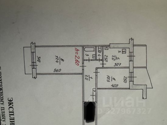 Высота потолков: 2.6 м.