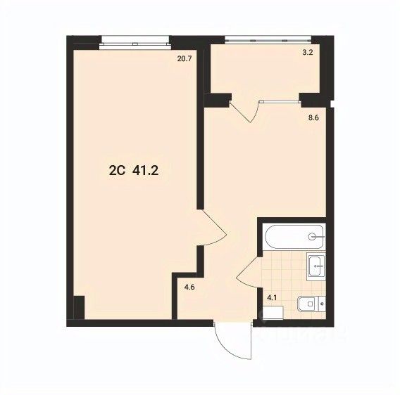 Большая гостиная 18,1м², приватная спальня 10м². Пространство комнат легко можно зонировать и она отлично подойдёт для жизни семьи с ребенком.