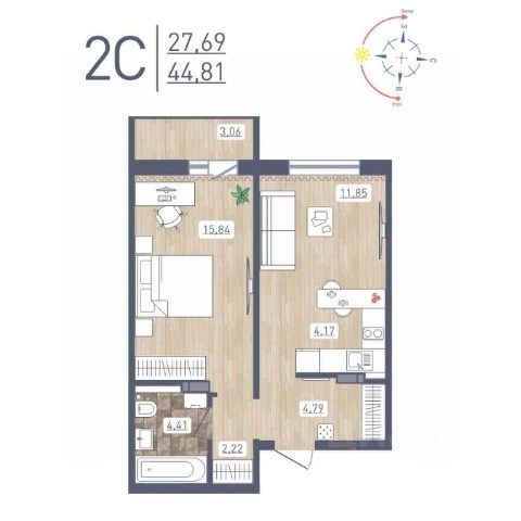 Продаётся 2-комнатная квартира в строящемся доме (Дом 10), срок сдачи: IV-кв. 2025, общей площадью 42.69 кв.м., на 1 этаже. Расположение, транспортная доступность Жилой комплекс "Радуга Сибири", занимающий территорию 10,4 га, расположен на берегу озера, в Ленинском районе Новосибирска. Это экологически благоприятный регион на левом берегу Оби. В двадцати минутах пешком находится железнодорожная платформа пригородного направления "Ипподром". Электричка доезжает до центра Новосибирска за 25 минут. От комплекса организовано движение маршрутного такси 12, на котором можно доехать до центра Левобережья (метро "Площадь Маркса") и главного железнодорожного вокзала Новосибирска. Путь на автомобиле до площади Маркса или международного аэропорта займет пятнадцать минут, до центра Новосибирска - двадцать минут. Район развивается: по соседству с "Радугой Сибири" построен жилой микрорайон "Чистая Слобода", планируется расширение Порт-Артурской улицы, продление улицы Титова. В 2016 году было запущено движение скоростного трамвая. Инфраструктура В цокольных этажах домов находятся коммерческие помещения. Вблизи комплекса "Радуга Сибири" расположены два детских сада, строится школа, планируется открытие поликлиники. За двадцать минут можно дойти до общеобразовательной школы 86 - в ней был построен спортивный зал и сделан ремонт в 2015 году. В пешей доступности находятся: Дворец культуры "Сибтекстильмаш" с кружками и секциями, Троице-Владимирский собор и Новосибирский ипподром. Вблизи ЖК много зеленых насаждений, пешком можно дойти до парка и сквера. На расстоянии 3 км от комплекса расположены МНТК "Хирургия глаза" им. С.Н Федорова, плавательный бассейн и спорткомплекс "Заря" со стадионом, зимним катком, футбольными и хоккейными площадками. Надежность застройщика Проект комплексной застройки "Радуга Сибири" реализует ООО "Развитие", которое создано в 2012 году и входит в состав промышленно-строительного концерна "Сибирь". Концерн работает с 1990 года, среди завершенных объектов - жилые комплексы "На Рябиновой", "Нарымская Жемчужина", "Тулинское", "Березовое". В 2012 году компания заняла первое место среди застройщиков Новосибирска по объемам ввода жилья. Градостроительный план ЖК "Радуга Сибири" был разработан в 2015 году, в июле этого же года выдано разрешение на строительство. Архитектура Жилой комплекс "Радуга Сибири" - это восемь монолитных 17-этажных домов. Здания возводятся по традиционной монолитной технологии: перекрестно-стеновая система с несущими монолитными продольными и поперечными внутренними стенами, объединенными железобетонными перекрытиями. При строительстве применяется тоннельная опалубка Teknik-L. Квартиры сдаются с предчистовой отделкой, качественными деревянными стеклопакетами, улучшенной шумоизоляцией. Стены выровнены и оштукатурены, полы выровнены. В квартирах выполняется разводка электричества и вертикальная разводка системы отопления, подводятся трубы холодной и горячей воды, канализации, устанавливаются счетчики на электроэнерг 2-комнатная квартира до 5 млн рублей в районе Ленинский в городе Новосибирск.