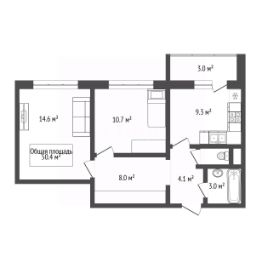 2-комн. квартира с предчистовой отделкой в ЖК "Город-на-озере" на 5 этаже. Общая площадь: 49.17 кв.м. Высота потолков 3.0 м.