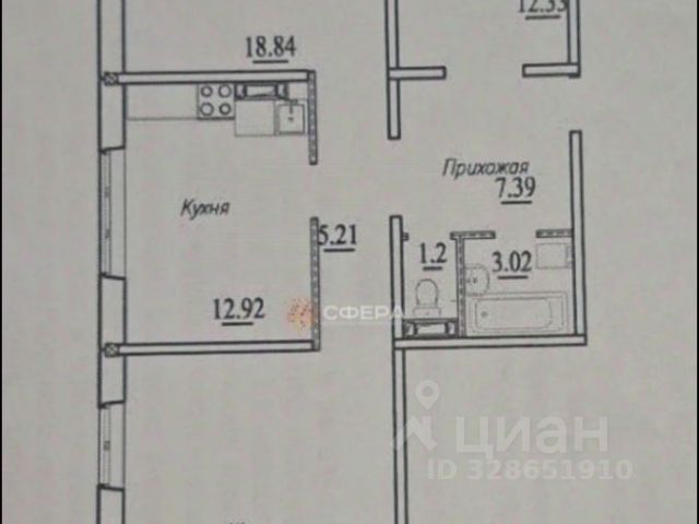 - Просторная 3-комнатная квартира находится на 2 этаже 10 этажного монолитного дома. Общая площадь квартиры 117,4 кв.м, жилая площадь 65,3 (17.9 + 23 + 24,4), площадь кухни 17,9 кв.м, прихожая 12 кв.м., две лоджии, с/у раздельный.