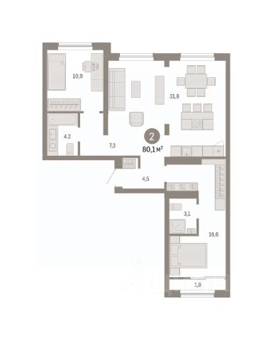 Продается 2-комн. квартира с предчистовой отделкой в Квартал "Авиатор" на 9 этаже. Общая площадь: 78.64 кв.м., жилая: 24.7 кв.м., площадь просторной кухни-гостиной: 32.7 кв.м. Комнаты изолированные, все окна выходят на одну сторону. В квартире одна лоджия, два совмещенных санузла. Высота потолков 2.82 м. Дом монолитный, черырехподъездный, переменной этажности, от 9 до 15 этажей. Квартира находится во 2-й секции высотой 9 этажей в корпусе Дом 3. На этаже 8 квартир. В подъезде 1 пассажирский и 1 грузовой лифт. Окончание строительства - 1 квартал 2026 года. Оформление сделки по договору долевого участия. Квартира с кухней-гостиной и двумя спальнями в квартале Авиатор. Особенности планировки: гардеробная, двойная выгода, мастер-спальня, разнесённые спальни, свободная планировка, терраса на крыше. квартиры в нашей базе: АВТ03-Ж2.9.2. Квартал "Авиатор" расположен на пересечении улицы Аэропорт и Мочищенского шоссе, рядом с остановками "Байкальская", "Жуковского" и "Городской аэропорт", в 7 минутах ходьбы от сквера им. Чаплыгина и 10 минутах от крупной транспортной магистрали — Красного проспекта. До станции метро "Заельцовская" и площади "Калинина" — около 10 минут на автомобиле. Квартал связан выездами с Мочищенским шоссе, улицами Жуковского, Аэропорт и Георгия Колонды. Сформированная инфраструктура локации — школы, детские сады, магазины, спортивный стадион — делают жизнь в квартале комфортной. Квартал состоит из восьми домов. Вдоль улицы Аэропорт расположено 6-18-этажное здание с видовыми квартирами. Оно защищает внутреннее пространство от шума и пыли. В центре — четыре 7-9-этажные урбан-виллы. Для них характерны увеличенная площадь квартир, повышенная приватность и малое соседство (30 — 40 квартир). Завершают комплекс два полузакрытых блока высотой 8-16 этажей с фасадами фисташкового цвета и подземной парковкой. Благодаря переменной высотности застройка приобретает человеческий масштаб, во дворы проникает больше света, а число квартир, из которых открывается красивый вид, значительно увеличивается. Первые этажи вдоль Мочищенского шоссе и улицы Аэропорт мы отдали под полезные сервисы и магазины. Активный фронт позволил интегрировать квартал в городской контекст. На территории "Авиатора" расположен многофункциональный спортивный комплекс с открытым амфитеатром, который станет центром притяжения всего района. Если Вы - риелтор, пожалуйста, за более подробной информацией обратитесь на горячую линию на нашем официальном сайте. #259sdc Продам 2-комнатную квартиру 80 м2 (квадратных метров) в Новосибирске.