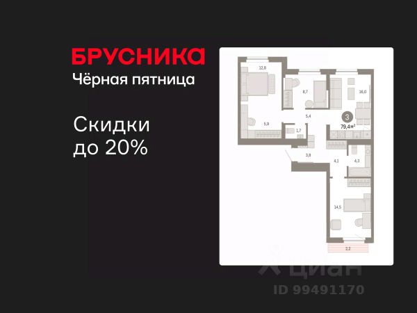 Квартира с кухней-гостиной и двумя спальнями в жилом районе "Пшеница". Особенности планировки: окна на две стороны, гардеробная, окна в пол, вид во двор, разнесённые спальни, предчистовая отделка, мастер-спальня, балкон.