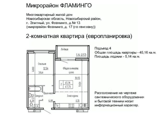 Продаётся 2-комнатная квартира в сданном доме (Фламинго, 19 (поз. 14)), срок сдачи: IV-кв. 2017, общей площадью 44.3 кв.м., на 2 этаже. Расположение, транспортная доступность Жилой комплекс "Фламинго" расположен в поселкеЭлитный Новосибирского района, на бывших сельскохозяйственных угодьях площадью 45 га, примыкающих к Кировскому району Новосибирска. Микрорайон считается экологически благоприятным пригородом, окруженным кварталами частных домов: по соседству находятся дачныекомплексы и коттеджные поселки "Березки" и "Элитный". С северной и южной стороны участок застройки граничит с лесополосами. шаговой доступности находится несколько остановок общественного транспорта: около двадцати линий автобусов, маршрутных такси и троллейбусов. Транспортные преимущества для владельцев автомобилей обеспечивает быстрый выезд на Ордынское и Советское шоссе (с новыми развязками), Бугринский мост и Чуйский тракт. Путь на машине до международного аэропорта Толмачево, главного железнодорожного вокзала или центра Новосибирска займет около сорока минут, до автовокзала - полчаса, до площади Карла Маркса (центр левобережья) - двадцать минут. Инфраструктура В микрорайоне Фламинго запланировано строительство спортивного комплекса "Магис-Фламинго" с бассейном и лыжно-тренировочной базой. В детском саду предусмотрено 330 мест, в общеобразовательной школе - 1100 мест. В поселке есть поликлиника на 300 посещений в смену, Дом культуры (более 40 кружков и секций), две общеобразовательные школы, колледж, несколько детских садов, библиотека. В шаговой доступности расположена ледовая арена, стадион, городок аттракционов, кинотеатр, сквер, несколько продуктовых магазинов, кафе, аптек, торговый комплекс и рынок. На общественном транспорте можно доехать до гипермаркета "Метро", площади Маркса с крупными торговыми комплексами и многочисленными объектами инфраструктуры, а также до центральных районов Новосибирска. Надежность застройщика Масштабный проект реализует алтайская компания "Жилищная инициатива", основанная в 1998 году в Барнауле. Комплексное освоение земель - приоритетное направление в девелоперских проектах компании. В активе застройщика жилые комплексы в Барнауле: "Рубин", "Дружный", "Дмитровские горки", "Лазурный". В 2008 году "Жилищная инициатива" вышла на рынок Новосибирска, открыв дочернее подразделение - ООО "Новосибирский квартал". Глава обоих предприятий - Ю.А. Гатилов, почетный строитель России. За 20 лет было введено в эксплуатацию более 100 домов, штат компании составляет около 700 человек. Архитектура Жилой комплекс "Фламинго" - это 40 пятиэтажных кирпичных и панельных домов и два гаражных комплекса на территории 44,8 га. Всего в комплексе будет представлено 3995 однокомнатных, двухкомнатных и трехкомнатных квартир площадью от 33 до 110 кв. м, расположенных на всех пяти этажах здания. Все квартиры в ЖК "Фламинго" передаются покупателям с готовым ремонтом под ключ. Фасады выполнены в светло-серых, бежевых и коричневых оттенках. Наружные стены панельны