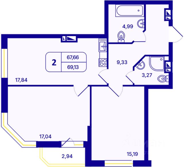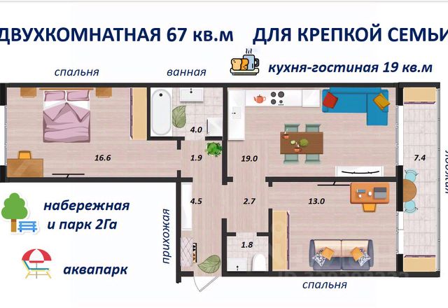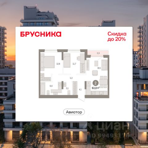 Двухкомнатная квартира от застройщика с предчистовой отделкой в ЖК "Лебедевский" на 11 этаже. Общая площадь: 59.7 кв.м., жилая: 20.6 кв.м., площадь просторной кухни-гостиной: 18.7 кв.м. Комнаты изолированные, все окна выходят на одну сторону. В квартире две лоджии, два совмещенных санузла. Высота потолков 2.82 м. Дом монолитный, многоподъездный, переменной этажности, от 9 до 12 этажей. Квартира находится в 1-й секции высотой 12 этажей в корпусе 1. На этаже 8 квартир. В подъезде 1 пассажирский и 1 грузовой лифт. Окончание строительства - 2 квартал 2028 года. Оформление сделки по договору долевого участия. Квартира с кухней-гостиной и двумя спальнями в квартале "Лебедевский". Особенности планировки: балкон, мастер-спальня, предчистовая отделка, разнесённые спальни. квартиры в нашей базе: ЛБД01.1-Ж1.11.3. "Лебедевский" находится в Заельцовском районе, между улицами Лебедевского и Георгия Колонды. Рядом расположены остановки наземного транспорта. До станций метро "Заельцовская" и "Площадь Калинина" — 10-15 минут на автомобиле. По улице Георгия Колонды можно доехать на Мочищенское шоссе, улицы Жуковского и Красного проспекта, а оттуда — в любую точку города. "Лебедевский" состоит из башен и закрытых домов-кварталов высотой от 8 до 17 этажей. Благодаря переменной высотности зданий, архитектура квартала получилась разнообразной, а дворы домов — светлыми. В основе проекта — органичное соседство жилья с природой. "Лебедевский" граничит с лесопарковой зоной. Также мы предусмотрели здесь игровые зоны, площадки для тренировок, прогулочные дорожки, отдельно стоящий паркинг со спортивным комплексом и подземные парковки. Камерные дворы предназначены для отдыха жителей и закрыты для других горожан. Они приподняты над уровнем земли, а доступ автомобилей на их территорию ограничен. Во дворах появится до 40 видов растений. Мы подберём их так, чтобы в каждое время года двор имел свой цвет. Деревья высадим сразу взрослыми, со сформированной кроной. Зелень будет даже зимой — благодаря хвойным растениям. Детские площадки мы сделаем максимально абстрактными — чтобы вдохновлять детей на творчество, а не диктовать им сценарии игры. Разместим игровое оборудование только из натуральных материалов. Архитектурная выразительность фасадов достигается за счёт практичных и в то же время эстетичных решений. Большие окна помогают наполнить комнаты естественным светом. Летние помещения в каждой квартире служат дополнительным пространством для уединения. Также здесь можно установить кондиционер. На верхних этажах спроектированы террасы, которые формируют архитектурный облик зданий. На первых этажах домов будут работать магазины и полезные сервисы. Если Вы - риелтор, пожалуйста, за более подробной информацией обратитесь на горячую линию на нашем официальном сайте. Продается 2-комнатная квартира с двумя санузлами в Новосибирске.