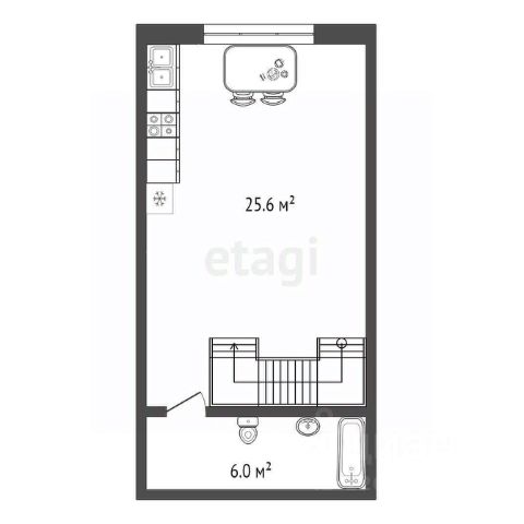 Кухня-гостиная - 24,7 квадратов; 29, 7 кв. м. - комната. Можно разделить на две комнаты, отдельно выделить детскую или ещё одну спальню.