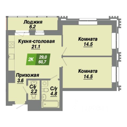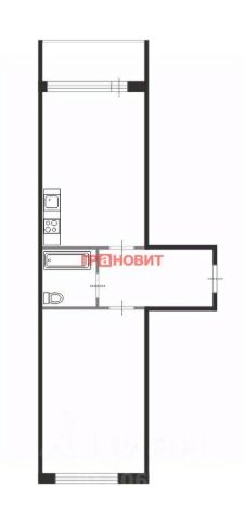 кухня-гостиная 20,7 м2 с выходом на застекленную лоджию 5,4 м2.