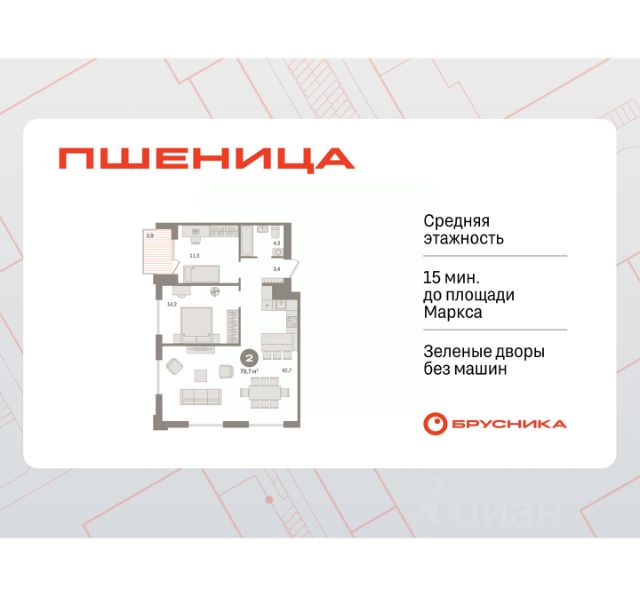 Обмен квартиры на новую. Предложение от застройщика. Звоните, мы вам все подробно расскажем! Продается двухкомнатная квартира от застройщика с предчистовой отделкой в ЖК "Пшеница" на 2 этаже. Общая площадь: 57.24 кв.м. Высота потолков 2.82 м. Дом монолитный, многоподъездный, переменной этажности, от 7 до 8 этажей. Квартира находится во 2-й секции высотой 7 этажей в корпусе 5-2. На этаже 6 квартир. В подъезде 1 пассажирский и 1 грузовой лифт. Окончание строительства - 4 квартал 2027 года. Оформление сделки по договору долевого участия. Квартира с кухней-гостиной и двумя спальнями в жилом районе "Пшеница". Особенности планировки: балкон, вид во двор, гардеробная, мастер-спальня, предчистовая отделка, разнесённые спальни. квартиры в нашей базе: ПШЦ05.2-Ж2.2.6. "Пшеница" расположена в третьем микрорайоне посёлка Краснообск, на пересечении улицы Центральная и Советского шоссе. Посёлок был создан в 1970 году. Архитекторы создали в Краснообске все условия для научной деятельности, быта, культурного развития, отдыха и поддержания здоровья жителей. Но их проект так и не был полностью реализован. Сегодня рядом с проектом "Пшеница" расположены остановки транспорта, выезды на транспортные магистрали. До Бугринского моста — 15 минут на автомобиле. До станции метро "Площадь Маркса" — 35 минут на автобусе, 20 минут на автомобиле. В 1520 минутах от жилого района расположен крупный ТРЦ "Мега". Внутри посёлка сформирована необходимая инфраструктура: лицей, школы, детские сады, больница, поликлиника, частные медицинские центры, магазины, спортивные клубы. Рядом находится лесопарк им. академика Синягина. Район "Пшеница" — это квартальная среднеэтажная застройка с закрытыми от машин безопасными дворами. В основу проекта мы заложили три принципа. Первый — разнообразие и плотность. Для нас важно создать среду, где человек в шаговой доступности мог бы получить любой сервис. Второй принцип — сохранение истории места, уважение к идеям первых архитекторов ВАСХНИЛа и локальной идентичности. Достопримечательностью района станет круговой бульвар. Третий принцип — связанность. Район постепенно станет единым целым за счет организации плотной сети вело- и пешеходных маршрутов, формирования разнородных общественных пространств. Если Вы - риелтор, пожалуйста, за более подробной информацией обратитесь на горячую линию на нашем официальном сайте. #2mga3B