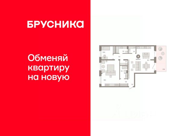 Просторная двухкомнатная квартира с предчистовой отделкой в Квартал На Декабристов на 2 этаже. Общая площадь: 131.7 кв.м., жилая: 41.3 кв.м., площадь просторной кухни-гостиной: 41.5 кв.м. Квартира - распашонка, без проходных комнат, окна выходят на paзные стороны дома. В квартире один балкон, два совмещенных санузла. Наличие террасы в квартире дает возможность для обустройства дополнительной площади. Высота потолков 2.81 м.