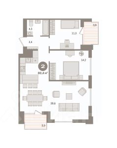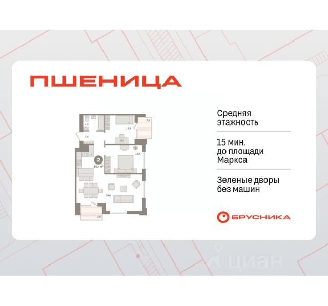 Обмен квартиры на новую. Предложение от застройщика. Звоните, мы вам все подробно расскажем! Двухкомнатная квартира от застройщика с предчистовой отделкой в ЖК "Пшеница" на 4 этаже. Общая площадь: 55.16 кв.м., жилая: 18.5 кв.м., площадь просторной кухни-гостиной: 18.7 кв.м. Комнаты изолированные, все окна выходят на одну сторону. В квартире один балкон, два совмещенных санузла. Высота потолков 2.82 м. Дом монолитный, многоподъездный, переменной этажности, от 8 до 9 этажей. Квартира находится во 2-й секции высотой 8 этажей в корпусе 6-1. На этаже 10 квартир. В подъезде 1 пассажирский и 1 грузовой лифт. Окончание строительства - 3 квартал 2028 года. Оформление сделки по договору долевого участия. Квартира с кухней-гостиной и двумя спальнями в жилом районе "Пшеница". Особенности планировки: гардеробная, разнесённые спальни, предчистовая отделка, мастер-спальня, балкон. квартиры в нашей базе: ПШЦ06.1-Ж2.4.4. "Пшеница" расположена в третьем микрорайоне посёлка Краснообск, на пересечении улицы Центральная и Советского шоссе. Посёлок был создан в 1970 году. Архитекторы создали в Краснообске все условия для научной деятельности, быта, культурного развития, отдыха и поддержания здоровья жителей. Но их проект так и не был полностью реализован. Сегодня рядом с проектом "Пшеница" расположены остановки транспорта, выезды на транспортные магистрали. До Бугринского моста — 15 минут на автомобиле. До станции метро "Площадь Маркса" — 35 минут на автобусе, 20 минут на автомобиле. В 1520 минутах от жилого района расположен крупный ТРЦ "Мега". Внутри посёлка сформирована необходимая инфраструктура: лицей, школы, детские сады, больница, поликлиника, частные медицинские центры, магазины, спортивные клубы. Рядом находится лесопарк им. академика Синягина. Район "Пшеница" — это квартальная среднеэтажная застройка с закрытыми от машин безопасными дворами. В основу проекта мы заложили три принципа. Первый — разнообразие и плотность. Для нас важно создать среду, где человек в шаговой доступности мог бы получить любой сервис. Второй принцип — сохранение истории места, уважение к идеям первых архитекторов ВАСХНИЛа и локальной идентичности. Достопримечательностью района станет круговой бульвар. Третий принцип — связанность. Район постепенно станет единым целым за счет организации плотной сети вело- и пешеходных маршрутов, формирования разнородных общественных пространств. Если Вы - риелтор, пожалуйста, за более подробной информацией обратитесь на горячую линию на нашем официальном сайте. #2SBa60