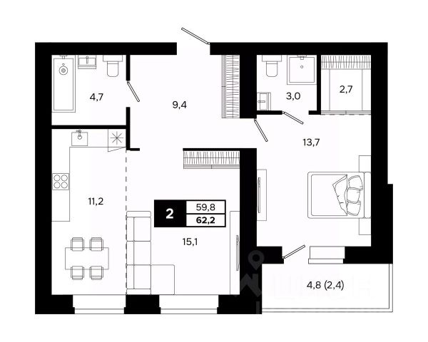 Продаётся 2-комнатная квартира в строящемся доме (Корпус 1), срок сдачи: II-кв. 2026, общей площадью 66.7 кв.м., на 7 этаже. "Счастье в Кольцово" - новый жилой комплекс Группы "Эталон" в р. п. Кольцово Новосибирской области. Комплекс будет возведен в Новосибирской городской агломерации, всего в 25 км от Новосибирска. Предполагаемая реализуемая площадь будущего комплекса составит 280 тыс. кв. м. Первая очередь строительства включает в себя 8 корпусов переменной этажности от 7 до 16 этажей. Район Кольцово, в котором будет возведен жилой комплекс, обладает всей необходимой инфраструктурой и является одной из ведущих научно-производственных площадок региона. Здесь расположено более десятка исследовательских организаций и инновационных компаний, занимающихся разработкой и производством в сфере биотехнологий. Участок примыкает к жилым кварталам и лесному массиву. В 25 минутах езды находится Академгородок и бизнес-инкубатор Академпарка. Завершение всех очередей проекта запланировано на 4 квартал 2029 года.