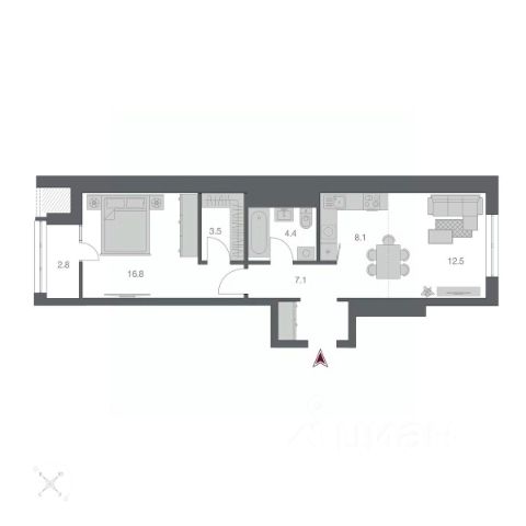 БОНУСОМ остается: В кухне - кухонный гарнитур с встроенной техникой, холодильник, морозильная камера, обеденная зона, в гостиной - диван, кресло, стенка, тв тумба, телевизор. (остальное обсуждаемо).