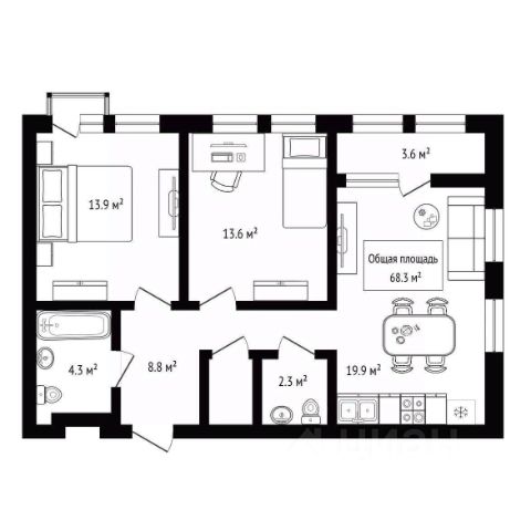 Арт. 116295826 Купить 2-комнатную квартиру в ипотеку В районе Кировский в городе Новосибирск.