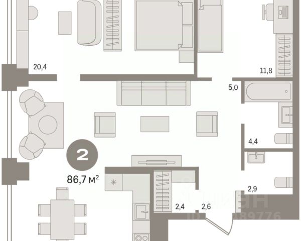 2-комн. квартира с предчистовой отделкой в ЖК "Лебедевский" на 6 этаже. Общая площадь: 57.5 кв.м., жилая: 19.6 кв.м., площадь просторной кухни-гостиной: 18.5 кв.м. Комнаты изолированные, все окна выходят на одну сторону. В квартире одна лоджия, два совмещенных санузла. Высота потолков 2.82 м. Дом монолитный, многоподъездный, переменной этажности, от 9 до 12 этажей. Квартира находится в 1-й секции высотой 12 этажей в корпусе 1. На этаже 8 квартир. В подъезде 1 пассажирский и 1 грузовой лифт. Окончание строительства - 2 квартал 2028 года. Оформление сделки по договору долевого участия. Квартира с кухней-гостиной и двумя спальнями в квартале "Лебедевский". Особенности планировки: балкон, предчистовая отделка, разнесённые спальни. квартиры в нашей базе: ЛБД01.1-Ж1.6.6. "Лебедевский" находится в Заельцовском районе, между улицами Лебедевского и Георгия Колонды. Рядом расположены остановки наземного транспорта. До станций метро "Заельцовская" и "Площадь Калинина" — 10-15 минут на автомобиле. По улице Георгия Колонды можно доехать на Мочищенское шоссе, улицы Жуковского и Красного проспекта, а оттуда — в любую точку города. "Лебедевский" состоит из башен и закрытых домов-кварталов высотой от 8 до 17 этажей. Благодаря переменной высотности зданий, архитектура квартала получилась разнообразной, а дворы домов — светлыми. В основе проекта — органичное соседство жилья с природой. "Лебедевский" граничит с лесопарковой зоной. Также мы предусмотрели здесь игровые зоны, площадки для тренировок, прогулочные дорожки, отдельно стоящий паркинг со спортивным комплексом и подземные парковки. Камерные дворы предназначены для отдыха жителей и закрыты для других горожан. Они приподняты над уровнем земли, а доступ автомобилей на их территорию ограничен. Во дворах появится до 40 видов растений. Мы подберём их так, чтобы в каждое время года двор имел свой цвет. Деревья высадим сразу взрослыми, со сформированной кроной. Зелень будет даже зимой — благодаря хвойным растениям. Детские площадки мы сделаем максимально абстрактными — чтобы вдохновлять детей на творчество, а не диктовать им сценарии игры. Разместим игровое оборудование только из натуральных материалов. Архитектурная выразительность фасадов достигается за счёт практичных и в то же время эстетичных решений. Большие окна помогают наполнить комнаты естественным светом. Летние помещения в каждой квартире служат дополнительным пространством для уединения. Также здесь можно установить кондиционер. На верхних этажах спроектированы террасы, которые формируют архитектурный облик зданий. На первых этажах домов будут работать магазины и полезные сервисы. Если Вы - риелтор, пожалуйста, за более подробной информацией обратитесь на горячую линию на нашем официальном сайте. #ZsgcsV 2-комнатной квартиры в ипотеку в Новосибирской области.