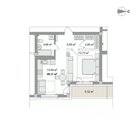 Купить 2-комнатную квартиру в кирпично-монолитном доме в рабочем поселке Краснообск Новосибирского района