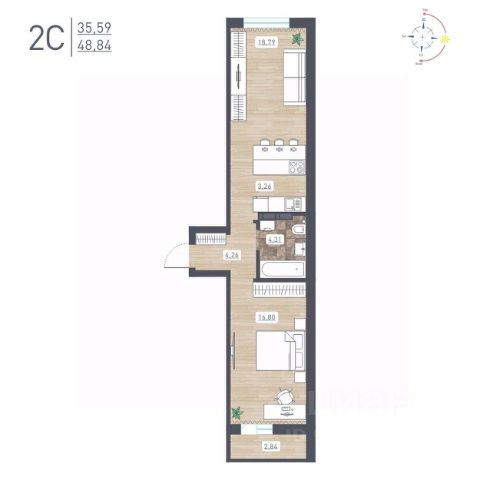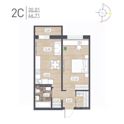 Продаётся 2-комнатная квартира в сданном доме (Забалуева, 69 (Дом 9)), срок сдачи: IV-кв. 2024, общей площадью 48.95 кв.м., на 17 этаже. Расположение, транспортная доступность Жилой комплекс "Радуга Сибири", занимающий территорию 10,4 га, расположен на берегу озера, в Ленинском районе Новосибирска. Это экологически благоприятный регион на левом берегу Оби. В двадцати минутах пешком находится железнодорожная платформа пригородного направления "Ипподром". Электричка доезжает до центра Новосибирска за 25 минут. От комплекса организовано движение маршрутного такси 12, на котором можно доехать до центра Левобережья (метро "Площадь Маркса") и главного железнодорожного вокзала Новосибирска. Путь на автомобиле до площади Маркса или международного аэропорта займет пятнадцать минут, до центра Новосибирска - двадцать минут. Район развивается: по соседству с "Радугой Сибири" построен жилой микрорайон "Чистая Слобода", планируется расширение Порт-Артурской улицы, продление улицы Титова. В 2016 году было запущено движение скоростного трамвая. Инфраструктура В цокольных этажах домов находятся коммерческие помещения. Вблизи комплекса "Радуга Сибири" расположены два детских сада, строится школа, планируется открытие поликлиники. За двадцать минут можно дойти до общеобразовательной школы 86 - в ней был построен спортивный зал и сделан ремонт в 2015 году. В пешей доступности находятся: Дворец культуры "Сибтекстильмаш" с кружками и секциями, Троице-Владимирский собор и Новосибирский ипподром. Вблизи ЖК много зеленых насаждений, пешком можно дойти до парка и сквера. На расстоянии 3 км от комплекса расположены МНТК "Хирургия глаза" им. С.Н Федорова, плавательный бассейн и спорткомплекс "Заря" со стадионом, зимним катком, футбольными и хоккейными площадками. Надежность застройщика Проект комплексной застройки "Радуга Сибири" реализует ООО "Развитие", которое создано в 2012 году и входит в состав промышленно-строительного концерна "Сибирь". Концерн работает с 1990 года, среди завершенных объектов - жилые комплексы "На Рябиновой", "Нарымская Жемчужина", "Тулинское", "Березовое". В 2012 году компания заняла первое место среди застройщиков Новосибирска по объемам ввода жилья. Градостроительный план ЖК "Радуга Сибири" был разработан в 2015 году, в июле этого же года выдано разрешение на строительство. Архитектура Жилой комплекс "Радуга Сибири" - это восемь монолитных 17-этажных домов. Здания возводятся по традиционной монолитной технологии: перекрестно-стеновая система с несущими монолитными продольными и поперечными внутренними стенами, объединенными железобетонными перекрытиями. При строительстве применяется тоннельная опалубка Teknik-L. Квартиры сдаются с предчистовой отделкой, качественными деревянными стеклопакетами, улучшенной шумоизоляцией. Стены выровнены и оштукатурены, полы выровнены. В квартирах выполняется разводка электричества и вертикальная разводка системы отопления, подводятся трубы холодной и горячей воды, канализации, устанавливаются счетчики на