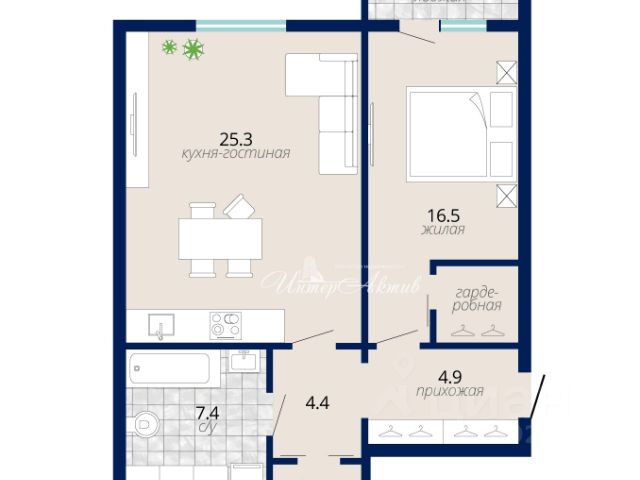 • ✅ Минимальная площадь: 34,3 м²
