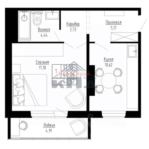 Квартира имеет просторную кухню-гостиную и 2 спальни, идеально подходящие для семейной пары или молодой семьи.