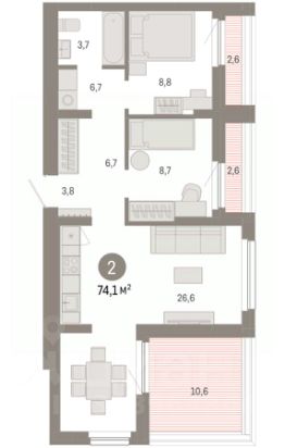 2-комн. квартира от застройщика с предчистовой отделкой в ЖК "Лебедевский" на 11 этаже. Общая площадь: 59.7 кв.м., жилая: 20.6 кв.м., площадь просторной кухни-гостиной: 18.7 кв.м. Комнаты изолированные, все окна выходят на одну сторону. В квартире две лоджии, два совмещенных санузла. Высота потолков 2.82 м. Дом монолитный, многоподъездный, переменной этажности, от 9 до 12 этажей. Квартира находится в 1-й секции высотой 12 этажей в корпусе 1. На этаже 8 квартир. В подъезде 1 пассажирский и 1 грузовой лифт. Окончание строительства - 2 квартал 2028 года. Оформление сделки по договору долевого участия. Квартира с кухней-гостиной и двумя спальнями в квартале "Лебедевский". Особенности планировки: балкон, мастер-спальня, предчистовая отделка, разнесённые спальни. квартиры в нашей базе: ЛБД01.1-Ж1.11.3. "Лебедевский" находится в Заельцовском районе, между улицами Лебедевского и Георгия Колонды. Рядом расположены остановки наземного транспорта. До станций метро "Заельцовская" и "Площадь Калинина" — 10-15 минут на автомобиле. По улице Георгия Колонды можно доехать на Мочищенское шоссе, улицы Жуковского и Красного проспекта, а оттуда — в любую точку города. "Лебедевский" состоит из башен и закрытых домов-кварталов высотой от 8 до 17 этажей. Благодаря переменной высотности зданий, архитектура квартала получилась разнообразной, а дворы домов — светлыми. В основе проекта — органичное соседство жилья с природой. "Лебедевский" граничит с лесопарковой зоной. Также мы предусмотрели здесь игровые зоны, площадки для тренировок, прогулочные дорожки, отдельно стоящий паркинг со спортивным комплексом и подземные парковки. Камерные дворы предназначены для отдыха жителей и закрыты для других горожан. Они приподняты над уровнем земли, а доступ автомобилей на их территорию ограничен. Во дворах появится до 40 видов растений. Мы подберём их так, чтобы в каждое время года двор имел свой цвет. Деревья высадим сразу взрослыми, со сформированной кроной. Зелень будет даже зимой — благодаря хвойным растениям. Детские площадки мы сделаем максимально абстрактными — чтобы вдохновлять детей на творчество, а не диктовать им сценарии игры. Разместим игровое оборудование только из натуральных материалов. Архитектурная выразительность фасадов достигается за счёт практичных и в то же время эстетичных решений. Большие окна помогают наполнить комнаты естественным светом. Летние помещения в каждой квартире служат дополнительным пространством для уединения. Также здесь можно установить кондиционер. На верхних этажах спроектированы террасы, которые формируют архитектурный облик зданий. На первых этажах домов будут работать магазины и полезные сервисы. Если Вы - риелтор, пожалуйста, за более подробной информацией обратитесь на горячую линию на нашем официальном сайте. #zSa0b7 Купить 2-комнатную квартиру в ипотеку в новостройке в Новосибирске.