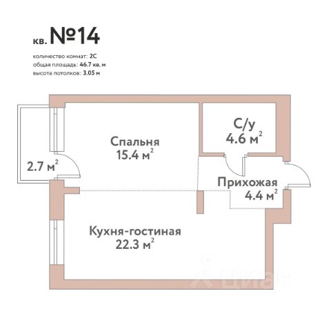 Продается 2-комн. студия с предчистовой отделкой. Квартира расположена на 2 этаже 24 этажного монолитно-кирпичного дома в ЖК "For Stars".