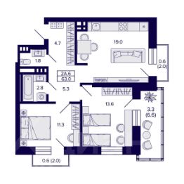 Квартиру можно купить по семейной ипотеке. Информация по телефону, наши менеджеры вам все расскажут! 2-комн. квартира с европланировкой и предчистовой отделкой в ЖК "Астон. Шесть Звезд" на 11 этаже. Общая площадь: 46.63 кв.м., жилая: 25.04 кв.м., суммарная площадь гостиной-столовой с кухонной зоной: 18 кв.м. Европланировка, кухня-гостиная - идеальный вариант для тех, кто любит часто принимать гостей. Комнаты изолированные, все окна выходят на одну сторону. В квартире одна лоджия, один совмещенный санузел. Высота потолков 2.65 м. Квартира находится в корпусе 2Б. Дом монолитный, одноподъездный, высотой 26 этажей. На этаже 7 квартир. В подъезде 5 грузовых лифтов. Окончание строительства - 4 квартал 2026 года. Оформление сделки по договору долевого участия. "Астон.Шесть звезд" - современный комплекс из 26-этажных домов класса "комфорт плюс" с уютными квартирами, вдохновляющими видами на левобережье, продуманной организацией жилого пространства, стильным дизайном общественных интерьеров и авторским благоустройством. Природа рядом, для этого ненужно ехать далеко загород. В районе жилого комплекса расположен парк Бугринская роща, в котором есть масса развлечений для вас и вашей семьи: - парк аттракционов - кемпинг "Бугринская гавань" с зонами барбекю - зимний каток и зона для катания на снегоходах - лыжная база "Сибирь" - летом благоустроенный пляж В 10 минутах ходьбы находится большой футбольный стадион, также поблизости есть конный клуб "Мустанг". В пределах 15 минут езды на общественном транспорте расположены учебные заведения - Новосибирский Государственный Технический Университет, Сибирский университет потребительской кооперации и колледжи. Фасады жилого комплекса - воплощение современного стиля. Такой эффект дает сочетание строгих линий, благородных оттенков натуральных материалов и блеска вертикального витражного остекления. Авторский дизайн холлов сочетает натуральные оттенки и фактуры дерева, керамогранита, декоративной штукатурки. Обилие света и воздуха создает сочетание стеклянных и зеркальных элементов со стильной трековой подсветкой, дополненной акцентнвми бра. Мягкие зоны в таком антураже особенно уютны и удобны для коротких встреч или ожидания курьера. Квартира будет просторнее, если оставить коляску, велосипед или игровой инвентарь в колясочной с удобными полками. Хранить не сезонные вещи можно в личной кладовой. Благоустроенный закрытый двор спроектирован с учетом безопасности и многофункциональности пространства - здесь можно поиграть с детьми, заняться спортом или просто отдохнуть в парковой зоне. Центром притяжения в "Астон.Шесть звезд" станет современный и функциональный комьюнити-центр. Это не просто модное слово, а забота о комфорте и хорошем настроении жителей комплекса. Здесь можно спокойно поработать утро, встретиться с соседями за чашкой чая или провести небольшое мероприятие. #Z63Z9B 2-комнатная квартира в новостройке с отделкой в районе Кировский в городе Новосибирск.