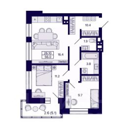 2-комн. квартира с европланировкой и предчистовой отделкой в ЖК "Астон. Шесть Звезд" на 16 этаже. Общая площадь: 46.26 кв.м., жилая: 24.96 кв.м., общая площадь гостиной-столовой с кухонной зоной: 18.0 кв.м. Европейская планировка, в просторной кухне-гостиной удобно как готовить, так и отдыхать. Комнаты изолированные, все окна выходят на одну сторону. В квартире одна лоджия, один совмещенный санузел. Высота потолков 2.65 м.