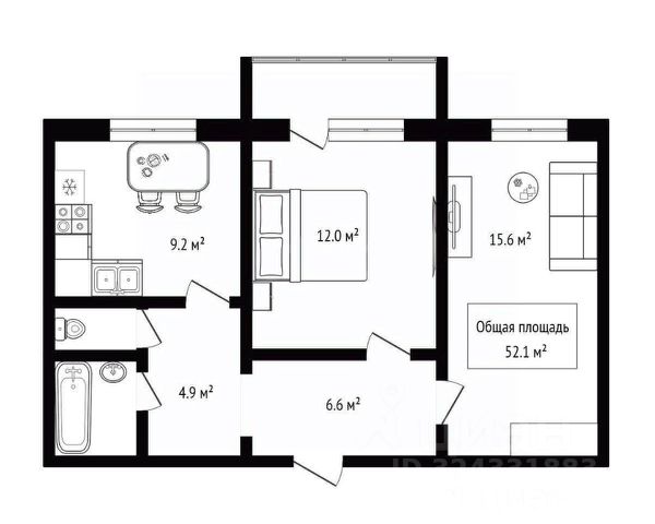 • ✅ Минимальная площадь: 34,4 м²