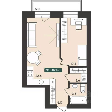 Компактная студия остается высоко ликвидным форматом жилой недвижимости, поэтому будет интересна для приобретения своего первого жилья, жизни соло и инвестирования.