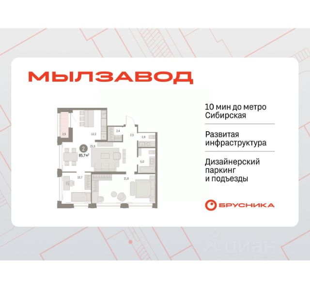 Двухкомнатная студия с предчистовой отделкой в ЖК "Рафинад" на 2 этаже. Общая площадь: 53.1 кв.м., жилая: 34.85 кв.м., общая площадь гостиной-столовой с кухонной зоной: 26.75 кв.м. Комнаты изолированные, все окна выходят на одну сторону. В квартире одна лоджия, один совмещенный санузел. Высота потолков 2.7 м. Покупатель может дозаказать отделку. Стоимость и сроки: — Ремонт "под ключ" — 25 000 ₽ за м². Срок — 3 месяца. — Ремонт с меблировкой и техникой — 45 000 ₽ за м². Срок тот же — не увеличивается. Работаем сразу с несколькими квартирами — инвестор может взять пакет, не переживая, что сроки затянутся. Что входит: Ремонт — всё, что нужно для быстрого заселения: обои, ламинат или ПВХ, натяжной потолок с освещением, розетки, выключатели, межкомнатные двери, полностью готовая ванная комната. Меблировка и техника — кухня, мягкая мебель, СВЧ, духовка, холодильник, стиралка, чайник, шторы, фильтр для воды, утюг, гладильная доска, балконный стеллаж, мелочи для уюта — квартира полностью готова к сдаче в аренду. Квартира в ЖК "Рафинад", расположенном в Заельцовском районе Новосибирска, в окружении леса и между двух озер: Жемчужина Сибири и Утиное. На квартиру распространяется семейная ипотека, IТ ипотека, рассрочка на индивидуальных условиях (до 6 месяцев на готовые квартиры). Проект "Рафинад" создан для современных людей, мечтающих жить на малом удалении от городского центра в экологически выгодном окружении, но, при этом ценящих комфорт и новые девелоперские технологии. Уютное место, обособленное от окружающего пространства, современная урбанистическая архитектура среди живописной безмятежности. Отстранённость от эмоционально нагруженного городского трафика, ясность сознания, спокойствие, уравновешенность. Здоровье, лёгкость дыхания, пробежки, бассейн, лыжи. Экологически выгодное место в черте города с собственной экосистемой. Воздух, который отличается от городского чистотой, загородное небо — без светового загрязнения. Дом рядом с утиными озёрами, берега которых созданы для прогулок. Лес и природные пейзажи радуют глаз, умиротворяют. Фермерский рынок, все возможные магазины и сервисы, "всё рядом". Комфорт, самодостаточность, плавный релакс. Рационально организованное пространство двора, три зоны, построенные в соответствии с тремя составляющими структурной формулы сахара C12H22O11: зона с пятью детскими площадками, зона спорта с мини-трибунами, зона для общения и отдыха с беседками и зеленью. Дружелюбная, безопасная среда для непринуждённого времяпровождения. Светлый цвет кирпича настраивает на позитивный лад, освежает ментально, делает пространство жилого комплекса более открытым. Название "Рафинад" повлияло на архитектурный образ, основой которого стали компактность и "кубичность", адаптированные к нормам современного строительства. Строения выполнены в кирпичной динамичной кладке. Архитектурный образ дополнен важной деталью — ночной подсветкой зданий "цифровым" белым светом. Продается 2-комнатная квартира с лоджией в Новосибирской области.
